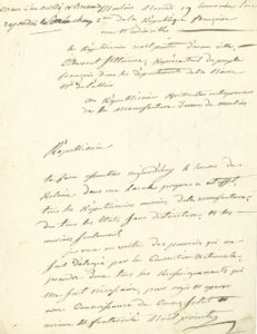 l'établissement et de la mise en activité des fonderies de canons, « Le Républicain Noël Pointe d'Arme ville, ci devant St Étienne, Représentant du peuple français dans les départements de la Nièvre et de l'Allier », ordonne à l'entrepreneur de réunir « tous les Républicains ouvriers de la manufacture, de tous les états sans distinction, et les ouvriers seulement. Je veux [...] prendre d'eux tous les renseignements qui me sont nécessaires, pour agir et opérer avec connaissance de cause »...