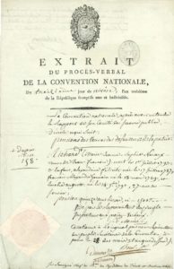 CONVENTION NATIONALE. 4 P.S. par des députés, janvier-juin 1795 ; 1 page in-fol. chaque, avec vignette et en-tête Extrait du procès-verbal de la Convention nationale, sceaux sous papier. Signatures de L.T. Bernier, J.M. Bion, H.M. Borel, J.J....