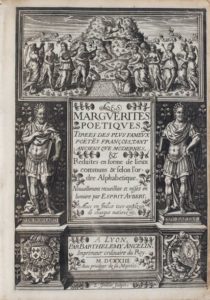 Première édition des Marguerites poétiques, florilège présenté par l'auteur comme un ramas de toutes les plus belles pointes de nos Poëtes & par conséquent la quintessence & cresme des plus beaux esprits de France.
