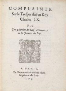 BAÏF (Jean Antoine de). Ɵ Complainte sur le Trespas du feu Roy Charles IX. Paris, De …