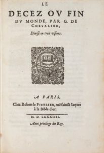 CHEVALIER (Guillaume de). Ɵ Le Decez ou Fin du monde. Paris, Robert le Fizelier, 1584. In-4, …