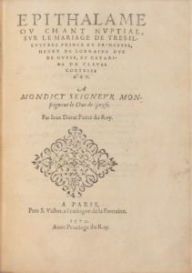 DORAT (Jean). Ɵ Epithalame ou Chant nuptial, sur le mariage de très-illustres prince et …