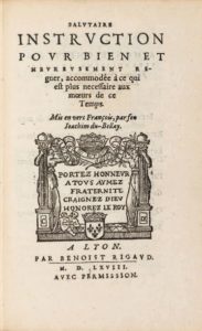 DU BELLAY (Joachim). Ɵ Salutaire instruction pour bien et heureusement régner, accommodée à ce …
