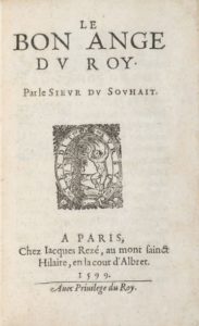 DU SOUHAIT (François). Ɵ Le Bon ange du Roy. Paris, Jacques Rezé, 1599. Plaquette in-8, …