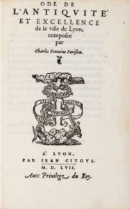 FONTAINE (Charles). Ɵ Ode de l'Antiquité et excellence de la ville de Lyon. Lyon, Jean Citoys, …