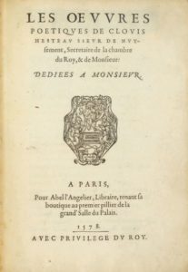HESTEAU (Clovis, sieur de Nuysement). Ɵ Les Œuvres poétiques. Paris, Pour Abel L'Angelier, …