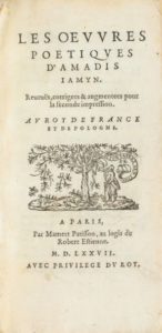 JAMYN (Amadis). Ɵ Les Œuvres poétiques. Reveuës, corrigées & augmentées pour la seconde …
