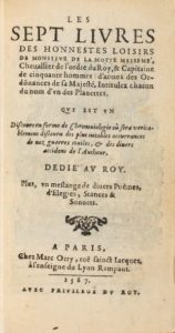 LA MOTTE-MESSEMÉ (François Le Poulchre de). Ɵ Les Sept livres des honnestes loisirs. Intitulez …