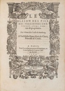 LA TAILLE (Jean de). Ɵ Le Blason des pierres précieuses contenant leurs vertuz & proprietez. …