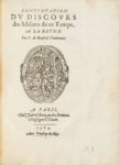 Important recueil réunissant les 4 premiers discours politiques de Ronsard, dont la rédaction et la publication sont concomitantes avec la première guerre de Religion qui éclata en 1562.