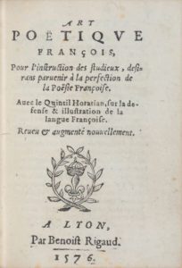 Édition rare et très augmentée, accompagnée du Quintil Horatian écrit par Barthélemy Aneau en réponse à la Deffence & illustration de la langue française de Joachim du Bellay.