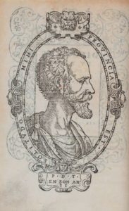 Sortie des presses de Jean de Tournes, elle est joliment imprimée en caractères italiques. Le titre est placé dans un encadrement à motifs d'arabesques et est orné, au verso du feuillet, du beau portrait de l'auteur à l'âge de 31 ans vu de profil dans un cadre ovale.