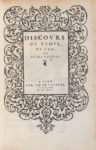 TYARD (Pontus de). Ɵ Discours du temps, de l'an, et de ses parties. Lyon, Jean de Tournes, 1556. …