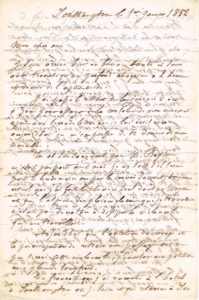 Gabriel FERRY (Louis de Bellemare dit, Grenoble 1809-1852, auteur de romans d’aventures, il meurt en mer le 3 janvier 1852 dans l’incendie du navire « L’Amazone », alors qu’il se rendait à San-Francisco pour suivre les aventures des chercheurs d’or) / Impressionnante lettre autographe signée « L. de Bellemare », car vraisemblablement l’une de ses toutes dernières, écrite avant de périr en mer : lettre de 3 p in-8 denses, à un ami, de Southampton le 1er janvier 1852, la veille de son embarquement fatal sur « L’Amazone » [George Sand, qui a préfacé la réédition posthume de 1863 de son ouvrage « Les Révolutions du Mexique », cite une autre lettre de Ferry du 1er janvier 1852 adressée à son fils, et raconte ses derniers héroïques instants]