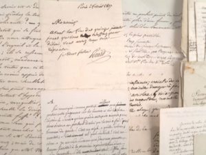 Louis-Benoit PICARD (1769-1829, dramaturge de l’Académie Française, Directeur de l’Académie Impériale de Musique) / Fort ensemble de lettres autographes signées, brouillons de lettres aut. sign., notes aut. d’appréciation d’acteurs lors d’audition, manuscrits aut. de pièces etc. (plus de 200 pages, tous formats)