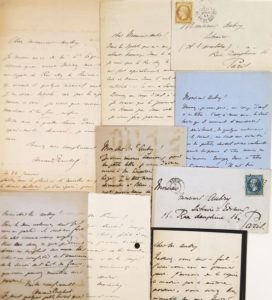 BLOIS (Loir Cher) – Armand BASCHET (1829-1886, journaliste et polémiste blésois, ami de Théophile Gautier et Charles Baudelaire) / Correspondance de 7 lettres autographes signées, Années 1860, qq enveloppes conservées, au libraire-éditeur Auguste Aubry