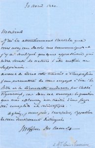 Maxime DU CAMP (1822-1894, Ecrivain de l'Académie Française ami de Flaubert et Baudelaire) / Lettre autographe signée, 1 p in-8, 30 avril 1880, à l'ingénieur et explorateur Louis Simonin (nom du destinataire écrit d'une autre main) : Il a lu l'article que son correspondant lui a soumis, et "j'y ai souligné quelques expressions qui m'ont semblé de nature à être modifiées ou supprimées", Il l'encourage à lire "La Bible de la Découverte moderne" par l'Abbé Vigouroux, car "dans cet ouvrage la question que vous effleurez est traitée d'une façon très complète et scientifique"