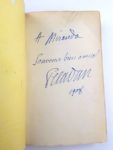 Sâr PELADAN ou Sâr MERODACK (Joséphin Péladan dit, 1858-1918, Occultiste, écrivain et critique) / 1°) "Le Nimbe noir", roman paru en 1907 au Mercure de France, édition originale avec une justification de tirage numérotée 158 (sans autre précision), 320 p in-8, relié plein maroquin bleu, plats avec encadrement doré, couverture conservée, exemplaire enrichi d'un envoi autographe signé du Sâr Péladan de 1908 – 2°) Lettre autographe signée, 1 p grand in-8
