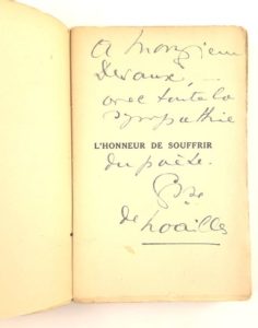 Anna de NOAILLES (1876-1933, femme de lettres) / « L’Honneur de souffrir », Bernard Grasset 1927, 191 p, avec envoi autographe signé