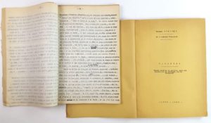 Georges DUHAMEL (1884-1966, écrivain de l’Académie française) / 1°) Ensemble de 2 tapuscrits originaux brochés in-4 : « Biographie de mes Fantômes » (191 p, avec quelques corrections autographes, il manque le premier chapitre, la pagination commence à 14) et « Variétés – Textes inédits ou publiés, mais non recueillis en ouvrages mis en librairie – 1933-1940 » (une centaine de pages pour 20 dossiers : articles, discours, messages etc.) – 2°) Photographie originale montée sur carton (15 x 23,5 cm) signé de sa main