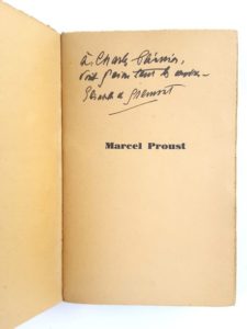 Elisabeth de GRAMONT (1875-1954, femme de lettres familière de Proust) / « Marcel Proust », Flammarion, 1948, éd. or., service de presse, 284 p, 8 planches hors texte, avis de parution conservé, avec envoi autographe signée à l’écrivain belge Charles Plisnier