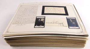 AUTOGRAPHES – THEATRE XIX° - début XX° / Véritable collection présentée en 145 feuilles d’album, d’environs 365 lettres et cartes autographes signées (plus des dizaines de cartes de visites), agrémentées de photos originales et documents, tout est parfaitement légendé et monté sur onglet ou charnière : Madame Agar, Madame Arnould-Plessy, Georges Baillet, Blanche Baretta, Baron Père, Baron Fils, Julia Bartet, Harry Baur, Georges Beer, Pierre Berton, Jean Bosquier-Gavaudan, Bouffé, Victor Boucher, Rachel Boyer, Berthe Cerny, Jules Clarety, Max Dearly, Louis Decori, Emile Dehelly, Marie Delaporte, Louis Delaunay, Marie-Louise et Suzanne Derval, Aimée Desclée, Suzanne Després, Ernest van Dyck, Maurice de Féraudy, Frédéric FebvreDenis d’Inès, Laferrière, Pierre-Chéri Lafont, Henri et Victoria Lafontaine, Henri et René Luguet, Constance Maille, Anthony Mars, Caristie Martel, Henry Maubant, Bibiane Maufroy, Marie-Thérèse Pierat, Porel, Jeanne Provost, Charles Prud’hon, Gabriel Signoret, Silvain, Raphaele Sisos, Jules Truffier, Vilbert etc.