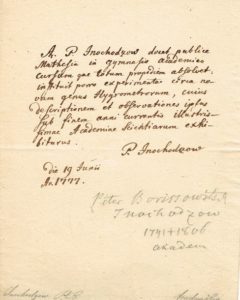 ASTRONOMIE - Peter INOCHODZOV (1741-1806, Astronome russe, membre de l'Académie de Saint-Pétersbourg) / Lettre autographe signée, 1 p grand in-8, en latin, 19 juin 1777