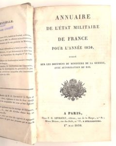 « Annuaire de l’état militaire de France pour l’année 1830 », F.G. Levrault, Paris, 1er mai 1830, 648 p in-8, relié plein vélin, ex-libris du Vicomte de Bouillé (tampon)