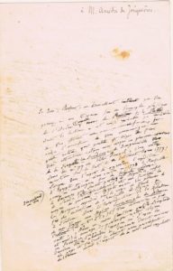 Alexandre de HUMBOLDT – Alexander von Humboldt (1769-1859, naturaliste, géographe et explorateur allemand) / Lettre autographe signée, 2 p in-8, Berlin, 28 septembre 1858, à Amédée de Jonquières (nom du destinataire écrit d'une autre main) - « Je dois, Monsieur, au bienveillant intérêt que vous portez à mes travaux pour la géographie physique de l’Océan l’aimable envoi du « Moniteur de la Flotte » dont la lecture m’est aussi agréable qu’instructive. En vous offrant ma vive reconnaissance, je saisis l’occasion de vous communiquer une petite notice qui peut-être est digne de fixer votre attention. Après avoir évoqué les glorieux souvenirs de la frégate « La Boudeuse » de Bougainville dans le n° 77 de votre journal, vous restez incertain sur le sort de ce bâtiment depuis 1779. Lorsque dans l’espoir de rejoindre l’Expédition d’Egypte je m’étais rendu en 1798 à Marseille pour m’embarquer sur la frégate suédoise « Le Jaramas » qui devait porter à Alger, le Consul de Suède Mr de Skioldebrand et me faciliter les moyens de parvenir en Egypte avec les pèlerins de La Mecque, expédiés par la voie de Tunis, je fis des excursions de Marseille à Hyères et à Toulon. Dans l’introduction de la « Relation de mon Voyage aux Régions équinoxiales du Nouveau Continent » (édit 8 vd JT, 75) vous trouverez ce qui suit : Nous ne nous sentions pas (Mr Bonpland et moi) le courage de prolonger notre séjour en Provence jusqu’à l’époque où d’après les dernières tristes nouvelles le « Jaramas » devait arriver. Le pays et surtout le climat nous paraissait délicieux, mais l’aspect de la mer nous rappelait sans cesse nos projets manqués. Nous trouvâmes à Toulon, appareillant pour l’Isle de Corse, la frégate « La Boudeuse », qui avait été commandée par Mr de Bougainville dans son voyage autour du Monde. Cet illustre navigateur m’avait honoré d’une bienveillance particulière pendant mon séjour à Paris lorsque je me préparais à suivre l’Expédition du Capitaine Baudin. Je ne saurais dépeindre l’impression que me fit la vue du bâtiment qui avait conduit Commerson dans les iles de la Mer du Sud. Il est des dispositions de l’âme dans lesquelles un sentiment douloureux se mêle à tout ce que nous éprouvons. Nous persistâmes toujours dans l’idée de nous rendre sur les côtes de l’Afrique, nous résolûmes de passer une partie de l’hiver en Espagne, la communication avec l’Afrique ne restant ouverte que par les ports de Carthage et de Cadix, c’est la politique de l’Orient à le permettre. Lorsque ces lignes furent données à l’impression après mon retour de l’Orénoque, la Cordillère et le Mexique, j’avais l’avantage de voir souvent Mr de Bougainville, conservant la plus aimable et la plus spirituelle sérénité de l’âme, aux séances du Bureau des Longitudes auxquelles j’assistais souvent devant d’après l’invitation affectueuse de Mr de Laplace. Le retour de Mr de Bougainville de sa circumnavigation du Globe avait cependant précédé ma naissance de quatre mois ! Veuillez bien excuser, Monsieur, l’incorrection de l’écriture d’un vieillard qui vient d’entrer dans sa 90ème année et agréez l’expression de mes sentiments les plus distingués » [Humboldt avait obtenu du Directoire l'autorisation de se joindre à l'Expédition d'Egypte avec le naturaliste Aimé Bonpland. La frégate suédoise à bord de laquelle il devait s'embarquer n'arrivant pas, les deux jeunes savants, las d'une longue et vaine attente, quittaient Marseille pour se rendre en Espagne où ils passèrent l'hiver 1798-99]