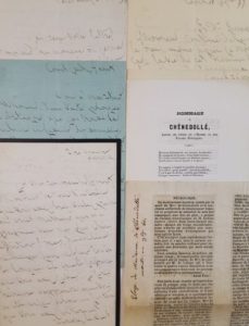 CALVADOS – Château de Coisel – Aimée de Chênedollé née de Banville (1875-1860), veuve de l’écrivain Charles-Julien de Chênedollé (1769-1833), l’ami de Chateaubriand propriétaire du Château de Coisel / Ensemble de 5 lettres autographes signées, 4 du Château de Coisel et 1 de Vire, Années 1850 – Joint : article nécrologique de Madame Chênedollé et pièce de vers imprimée « Hommage à Chênedollé »