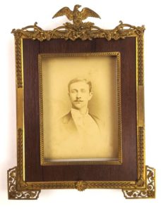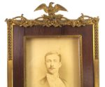 PRINCE IMPERIAL (Louis-Napoléon Bonaparte, 1856-1979, fils de Napoléon III) / Photographie originale par Albert Hautecoeur à Paris (tampon au dos), format cabinet (10,5 x 16,5 cm), présentée dans un cadre d’époque, vraisemblablement cadeau impérial, en palissandre et bronze doré (frises de feuilles de lauriers, palmettes, surmontées de l’aigle impériale enserrant un foudre et un rameau de lauriers – fente au bois et photo insolée)
