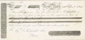 CHAMPAGNE - Pauline HEIDSIECK (1807-1857, veuve de Christian Heidsieck, elle continue l'exploitation sous le nom de "Veuve Heidsieck", en 1838, elle se remariera avec Henri-Guillaume Piper) / Lettre de change de 20.000 francs tirée par le négociant Joseph H. and Co de New York le 30 décembre 1835 en faveur de la Veuve Heidsieck via la Banque Rothschild Frères à Paris (à noter que 13 jours plus tôt, la Bourse et le quartier de Wall Street avait été complètement ravagés par un terrible incendie)