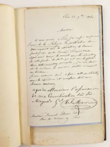 ARMEE PONTIFICALE – « Rapport du Général de La Moricière à Monseigneur de Mérode sur les opérations de l’Armée pontificale », Ed. Charles Douniol, Paris, 1860, éd. originale, bien complète de ses 3 cartes dépliantes, relié demi-chagrin mauve avec coins, exemplaire de l’éditeur Charles Douniod, enrichi de 2 lettres autographes signées du Général de La Moricière (1806-1865, alors au service de la cause pontificale), 1 et 2 p in-8, Paris 23 sept 1860 et Le Chillon 28 sept 1860, à Douniod au sujet de l’édition de ce rapport, et 1 lettre aut. sign. du Général Trochu (1815-1896), 1 p in-8, Saint-Genis-Laval près Lyon, 24 novembre 1865, à Doumiot, au sujet de corrections au « texte de mes adieux au regrettable Général de La Moricière »