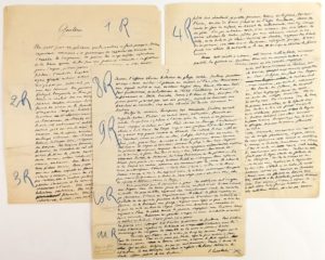 MORBIHAN – QUIBERON – Edmond LEPELLETIER de BOUHELIER (1846-1913, journaliste et député, ami de Verlaine, il fut son premier biographe) / Manuscrit autographe signé avec ratures et corrections, d’un article sur Quiberon, Années 1890, 3 p in-4 (découpé en segments et remontés en vue de la parution)