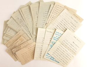 Octave MEYNIER (1784-1961, officier et explorateur) / Correspondance autographe signée de 53 lettres et 6 cartes, totalisant environs 250 p, de fin juillet à fin décembre 1910 – A 36 ans, c’est un officier et explorateur déjà aguerri des troupes coloniales du Soudan au Sénégal, il est alors professeur à L’Ecole militaire de Saint-Cyr, il a divorcé fin décembre 1909 de sa première femme (à son avantage) et il écrit à celle qui sera sa seconde épouse en 1911, Marie Raymonde Gisclard – Ce sont des lettres affectueuses, dans lesquelles on voit l’amour se préciser, de « ma chère petite fiancée » à « ma petite chérie », il parle de leur avenir, de leur future installation, il va chez Dufayel et à la Samaritaine choisir des meubles et les lui décrit etc. - Il va être inspecté par le Général Joffre, « je vais revêtir à cette occasion mes plus beaux atours », le lendemain il raconte que Joffre lui a fait de cordiales promesses pour son avancement, lui a évoqué la prise de Tonbouctou, mais il ne se fait guère d’illusions que de ne compter que sur lui-même – Il s’amuse d’un article dans la presse qui parle d’un Capitaine Meynier qui vient d’assassiner sa fiancée etc.