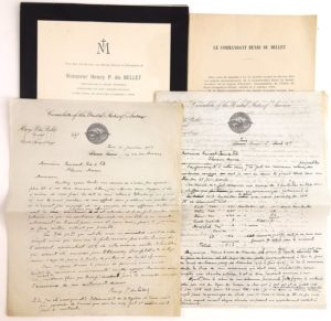 REIMS – Commandant Henry Pecquet du Bellet (1852-1924, Major de l’Armée américaine, Consul des Etats-Unis d’Amérique à Reims : c’est lui qui reçut la Croix de Guerre pour la Ville de Reims par le Président Poincaré) / Correspondance de 10 lettres autographes signées (ce sont les brouillons qu’il conservait), totalisant 16 p in-4, Années 1910, avec la Maison de Champagne Ruinart de Reims, dont il représentait les intérêts à Saint-Petersbourg – Joint : son faire-part de décès et une notice biographique imprimée