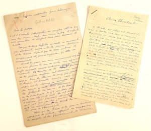 Théodore STEEG (Libourne 1868-1950, Sénateur, Gouverneur de l’Algérie) / Ensemble de 2 manuscrits d’articles autographes signés, l’un sur les relations intellectuelles franco-britanniques (6 p in-8), l’autre sur la crise du Théâtre (5 p petit in-8)