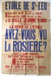 SAINT-LEU-LA-FORÊT (Val d’Oise) / Ensemble de documents concernant les activités de « L’Etoile de Saint-Leu », société sportive de patronage créée par l’Abbé Meunier en 1909 : 1°) Affiche (83 x 127 cm) de 1934 annonçant la revue à grand spectacle « Avez-vous vu la Rosière » à la Salle Jeanne d’Arc – 2°) Affiche (39,5 x 60 cm) de 1945 annonçant la « Revue locale et d’actualité « Libération » à la Salle Jeanne d’Arc – 3°) Ensemble de 2 dessins originaux préparatoires à la réalisation de l’affiche pour la « Revue de l’Etoile » « Libération », exécutés et signés par le dessinateur de presse Maurice-William Juhles (1896-1985, suiveur de Gus Bofa) - 4°) Affiche (40 x 60 cm) annonçant le « Grand Bal de l’Etoile » de 1947 – 5°) Affiche illustrée (60 x 80 cm) annonçant le « Bal de l’Etoile » de 1948 dans les Salons de la Croix Blanche – 6°) Affiche illustrée (61 x 80 cm) annonçant la Revue annuelle « Giboulées » à la Salle Jeanne d’Arc – Joint : ensemble de documents : 2 programmes, 2 manuscrits signés de chansons par l’érudit local Henri Caignard, photo etc.