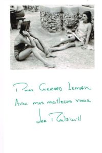 Lee RADZIWILL (née Caroline Bouvier, 1933-2019, Personnalité mondaine américaine, sœur cadette de Jacqueline Kennedy-Onassis, elle fut, entres autres, l'épouse du Prince Stanislas Radziwill) / Page d'album (bristol 12,5 x 20 cm) avec dédicace écrite et signée de sa main, avec photo de magazine