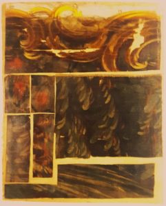 PEINTURE XVIII° / Ensemble de fragments de toiles peintes montés sur carton (37 x 46 cm), annotation au crayon : « Fragments toiles peintes Louis XV »