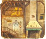 DESSINS XIX° / Ensemble de 5 études de décors de théâtre à la gouache et aquarelle (37 x 33 cm)