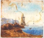 DESSINS XIX° / Ensemble de 5 études de décors de théâtre à la gouache et aquarelle (37 x 33 …