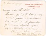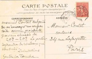 Gaston de LATOUCHE (Saint-Cloud 1854-1913, Peintre élève de Manet et ami de Zola) / 1°) Carte postale autographe signée, Saint-Cloud, 27 juin 1906, au marchand de couleurs Contet, rue Lafayette à Paris, pour une commande de "un coup toile comme précédente pour un châssis de 208-208", la vue représente sa maison à Saint-Cloud (légende) – 2°) Carte autographe signée, 1 p in-12 oblong, en-tête de sa propriété le Logis de Gros Doué à Champsecret (Orne), 2 août 1907, au galeriste Georges PETIT [le promoteur des Impressionnistes, l'un des plus puissants acteurs de l'époque du Marché de l'Art] : "Je me joins à tous vos amis pour vous serrer les mains et prendre part au deuil qui vous touche encore ! Bien cordialement"