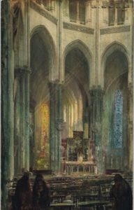 LILLE - Maurice CRETELLE (Né en 1891, Graveur et architecte) / Dessin original exécuté et signé de sa main, encre, aquarelle avec rehauts de gouache (26 x 42,5 cm, papier marouflé sur carton fort) - L'artiste a signé en bas à gauche et légendé et daté en haut à droite : "Lille - Notre Dame de la Treille 1925"