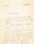 Jean-Gabriel DOMERGUE (1889-1962, Peintre mondain dont le thème favori fut la Parisienne) / Lettre autographe signée, 1 p in-4, Paris, 15 mai 1928, [à Charles Catusse, de l’entourage de Marcel Proust, la mère de Charles, Madame Catusse, fut la confidente de Proust] : "Mon bon Charles, Voici Madame Chenarvard, qui est la fille de notre camarade Chenavard, du reste, qui voudrait te voir au sujet d'un livre qu'elle a fait. Veux-tu lui réserver le meilleur accueil. Merci. Je suis encore sous le coup de l'émotion que m'a causée ton deuil si cruel [décès de Marie-Catherine Catusse, la mère de Charles].Je sais que rien ne peut consoler en de pareil moment, seule l'affection des amis peut aider à supporter la vie si triste, crois bien que tu as la mienne toute entière, on ne mesure du reste sa grandeur qu'à ces moments-là" - Joint : charmante lithographie (17,5 x 22,5 cm) signée dans la planche : "Les deux Vahinées"