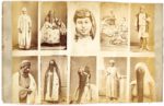 PHOTOGRAPHIE - EGYPTE vers 1870 – Hippolyte Délié et Emile Béchard : ensemble de 18 photographies sur papier albuminé, tirage en planches, contrecollées faces sur cartonnage (30 x 19 cm) : types fellah et scènes