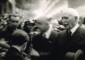 PHOTOGRAPHIE - Raymond BRAJOU (Photographe installé à Vichy, Il fut l’un des photographes officiels du Régime de Vichy) / Ensemble de 3 photographies originales (18,5 x 13 cm) avec chacune son tampon au dos, époque du Régime de Vichy : Le Maréchal Pétain et la foule l'entourant