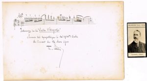 MUSIQUE – Théodore DUBOIS (1837-1924, compositeur et organiste) / Page d’album avec manuscrit musical autographe signé, 1 p grand in-8 oblong, Nice 12 mars 1900 : extrait de l’intermezzo de sa « Suite Villageoise » - Joint : petite photo de la Collection Félix Potin