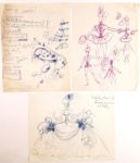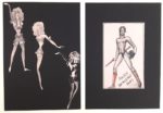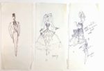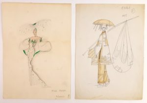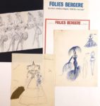 FOLIES BERGERE - Michel GYARMATHY (1908-1996, Directeur artistique des Folies Bergère durant plus de 50 ans, créateur des décors et costumes des revue) / Important ensemble de plus de 100 projets de décors et costumes, au crayon, à l’encre, découpages et collages, tous supports, certains au dos de son papier à en-tête ou en-tête des Folies, certains avec annotations (Les œuvres de Michel Gyarmathy sont rares : son fonds a été entièrement déposé par sa famille en Hongrie d’où il était originaire, pour en faire un musée) – Joint : photographie originale Années 60 de Michel Gyarmathy par A. Scarnati (24,5 x 18 cm)