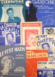 CHANSONS – Fonds Christiane VERGER (1903-1974, compositrice) / 1°) « Complainte de la Seine », manuscrit musical autographe, 2 p in-fol 2°) Ensemble d‘une trentaine de partitions imprimées des chansons qu’elle a mise en musique, pour Michèle Arnaud, Lucienne Boyer, Frères Jacques, Jean Lumière, Yves Montand, Germaine Montero etc